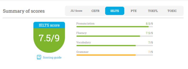 評価はCEFR、IELTS、TOEFL、PTE、TOEICなどの国際的な基準に沿って行われます。さらに、ACTFL(アメリカ外国語教育協会)認定の評価者と講師による独立した分析により、このAI技術の信頼性が確認されています。具体的には、AIスコアと人間の評価スコアの差はIELTSで±0.54以内と、非常に高い信頼性があることが証明されています。
