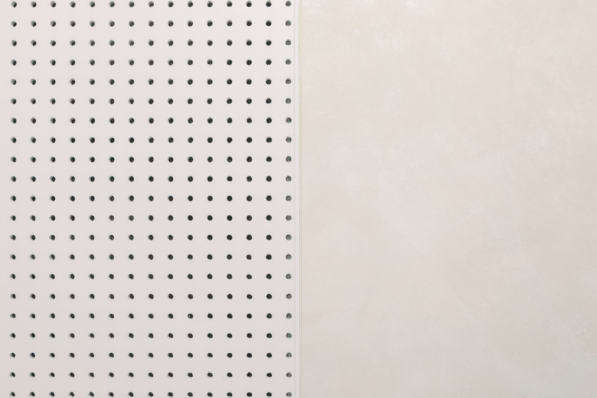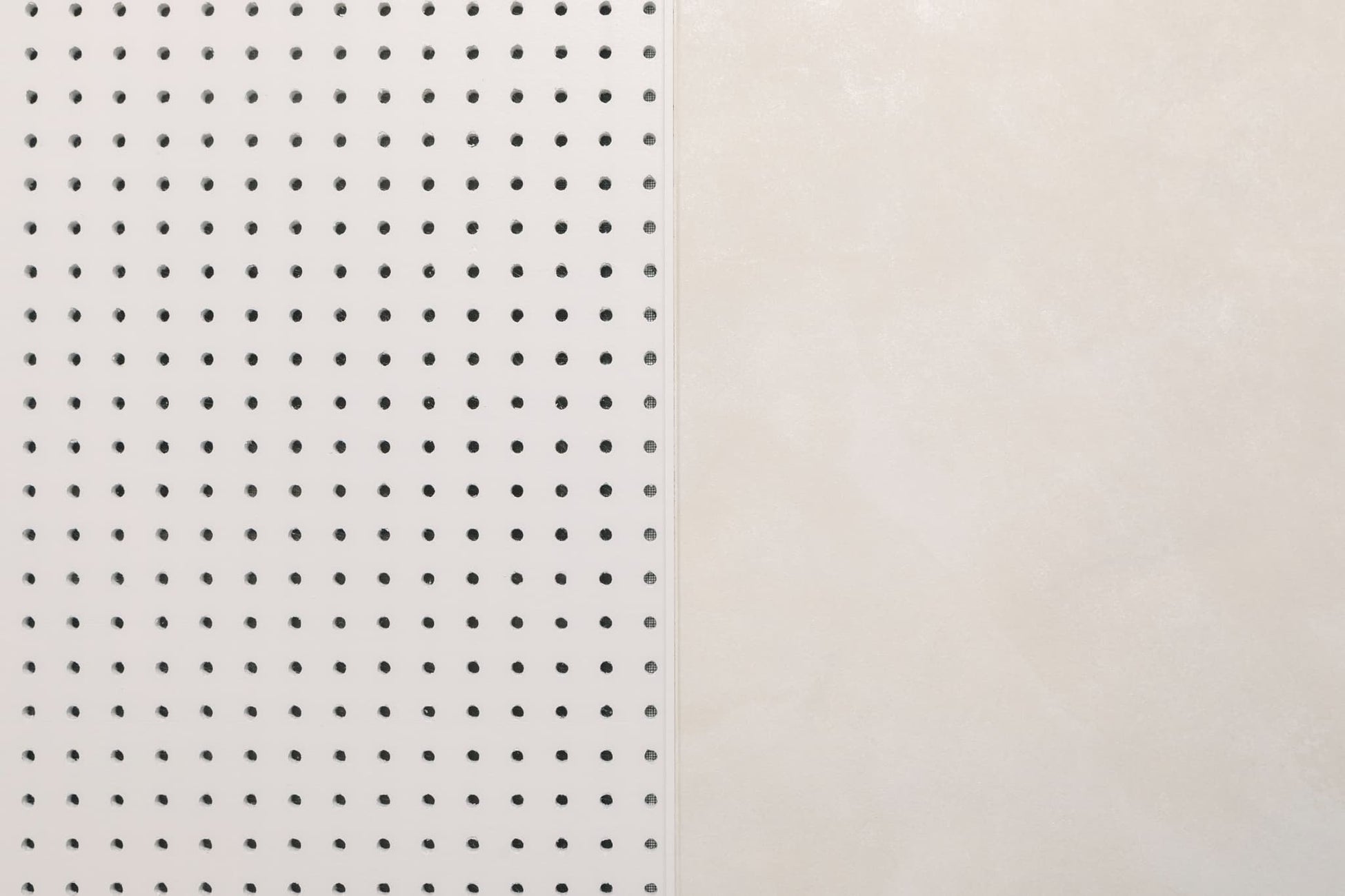 壁面の吸音層(有孔ボード)と反射層(遮音ボード)によって、シアター空間(防音室)が最適な音響になるように設計されています。