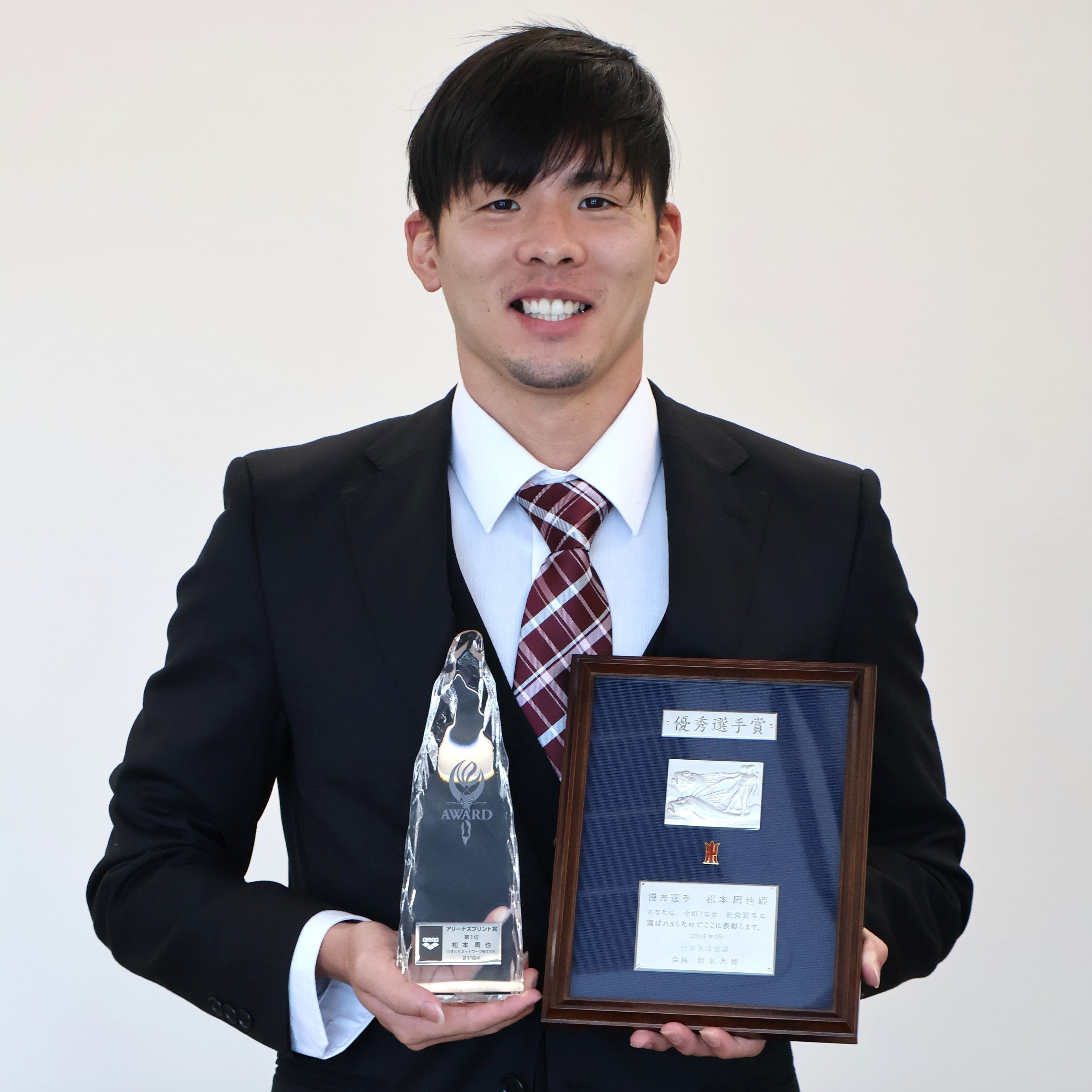 当社所属のアスリート社員 競泳 松本周也選手が、2026年1月26日に公益財団法人日本水泳連盟が主催した「JAPAN AQUATICS AWARDS 2025」において、「優秀選手」ならびに「アリーナスプリント賞 第一位」を受賞しました。