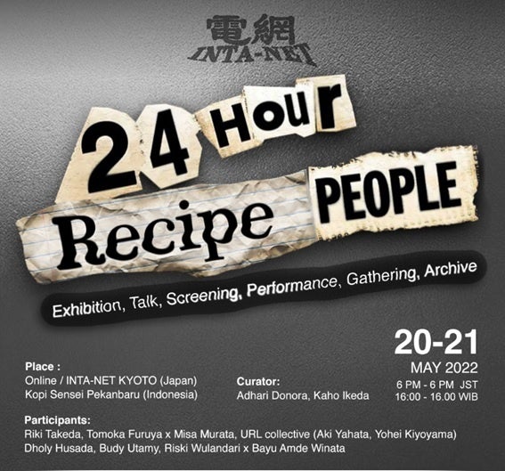 今回のイベント「24 Hour Recipe People」では、オンライン/京都とインドネシアの両会場で、レシピライブラリー参加者による展覧会、トーク、上映会、パフォーマンス、ギャザリングが開催されます。