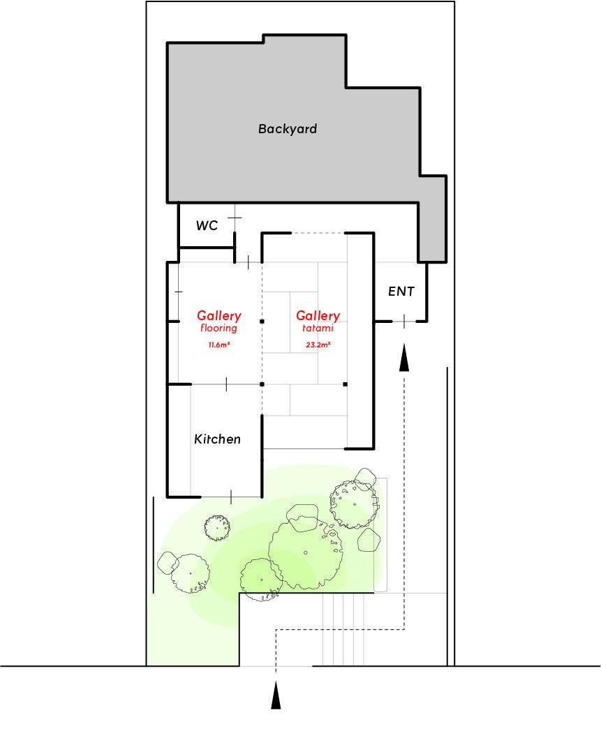 「gallery 一畳十間」は、畳・珪藻土・古材等の自然素材を使用しており、靴を脱いで足元から体感できる展示空間です。今後は、衣・食・住にまつわるイベントや次世代作家の展示会等を開催する予定です。アパレルの展示、家具の販売会、庭を一体でつかうワークショップ、キッチンを利用した食のイベントなど、閑静な住宅街で都会の喧騒から離れた特別な時間を提供します。