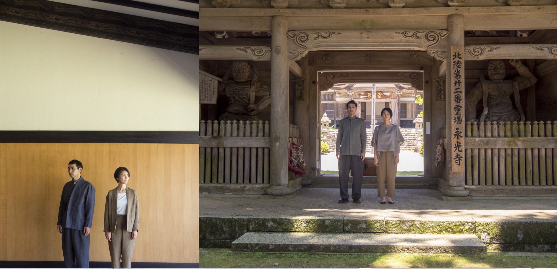 禅などの東洋思想と西洋思想を融合させた石川県出身の哲学者西田幾多郎哲学に触れられる西田幾多郎記念哲学館(建築家安藤忠雄設計)と、弊社工房近くにある禅寺 永光寺や羽咋運動公園弓道場でビジュアルを撮影。「凛」=心身を正す というブランドコンセプトをイメージさせる3つのスポットで撮影し、「凛装」の伝統と今を行き来する世界観を表現しました。
