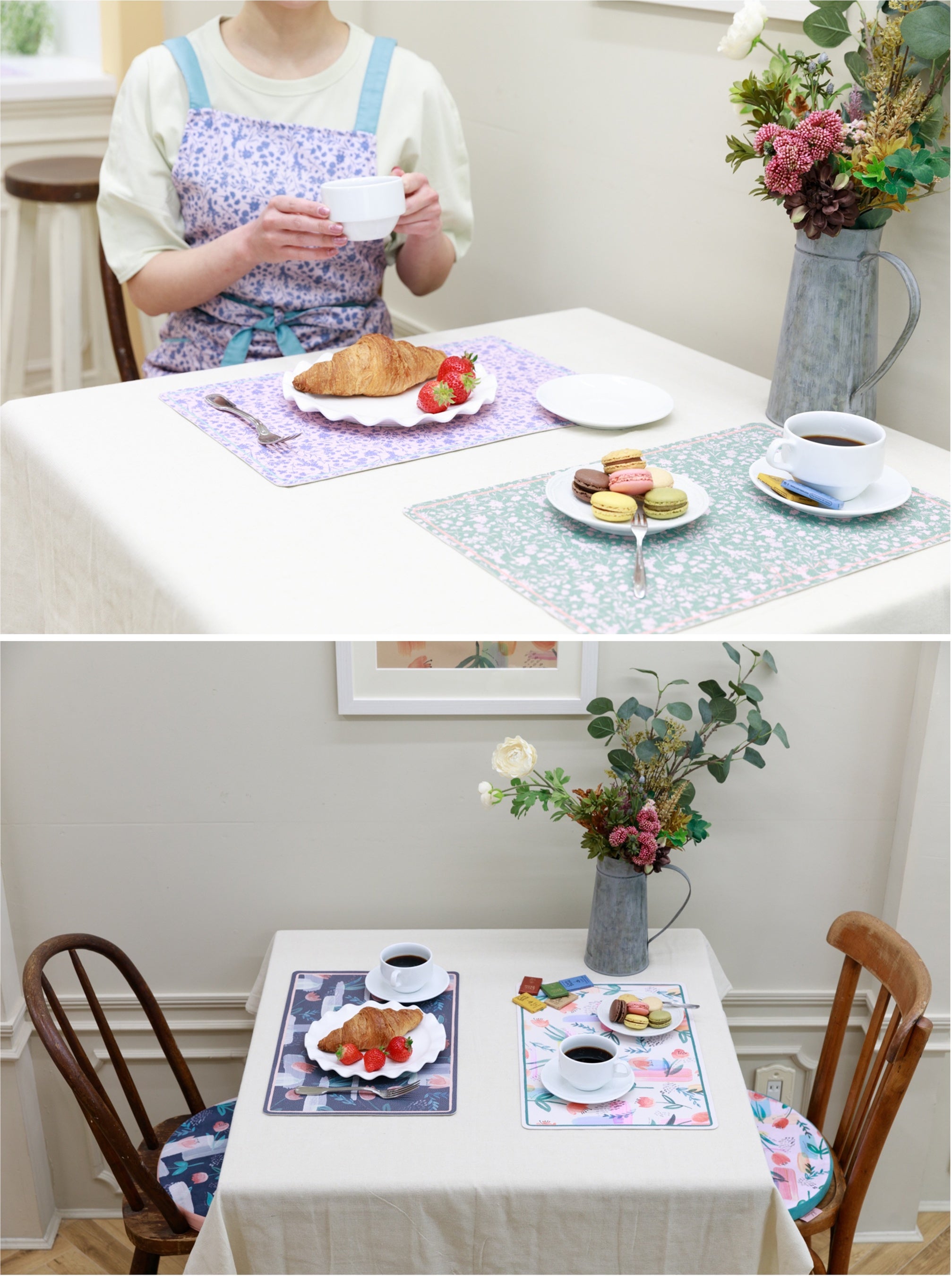 水彩花柄ランチョンマット(ネイビー、ピンク)/小花柄ランチョンマット(グリーン、ピンク)