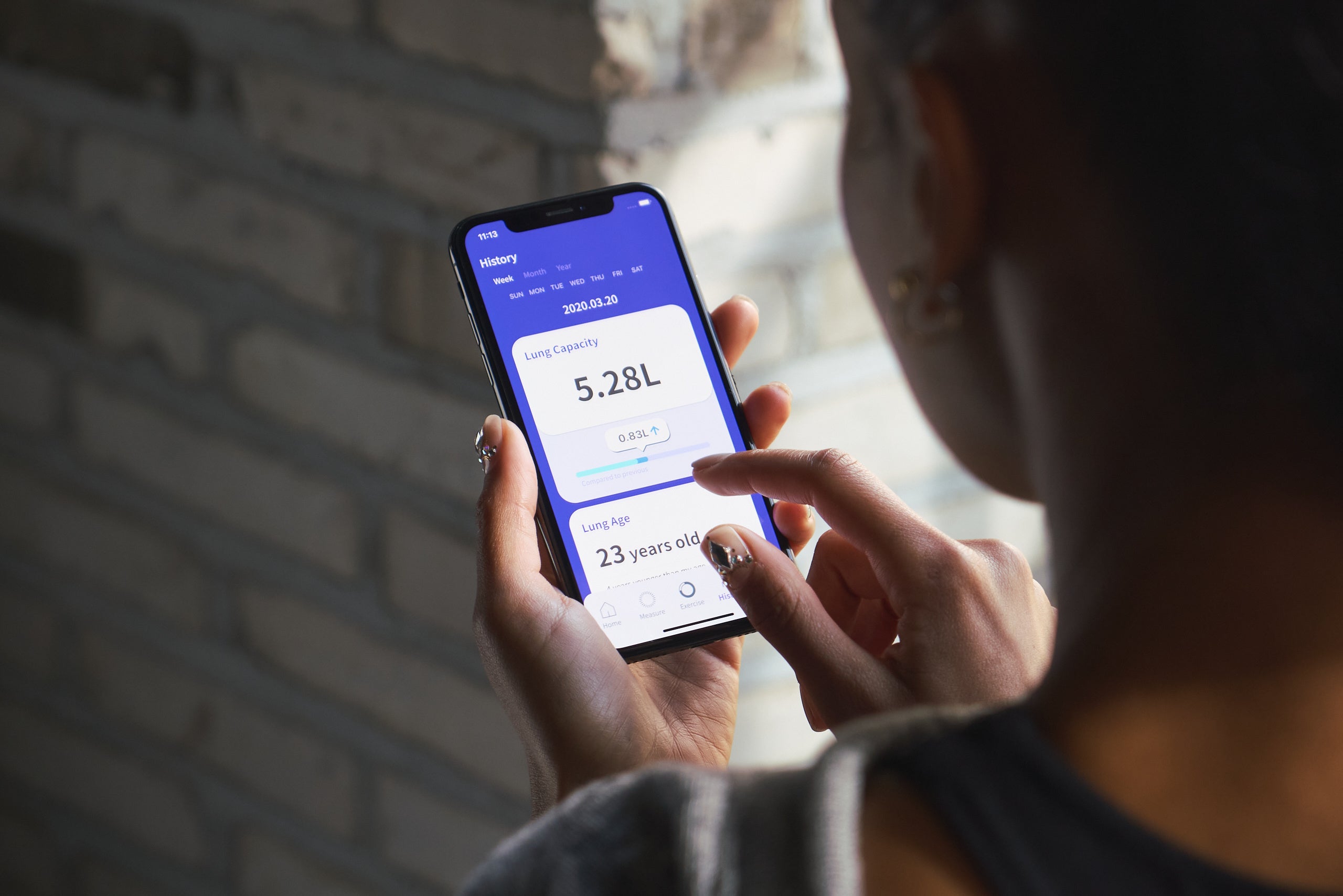 たった6秒間息をすることで、呼吸を測定し、個々に最適なトレーニングを提案します。