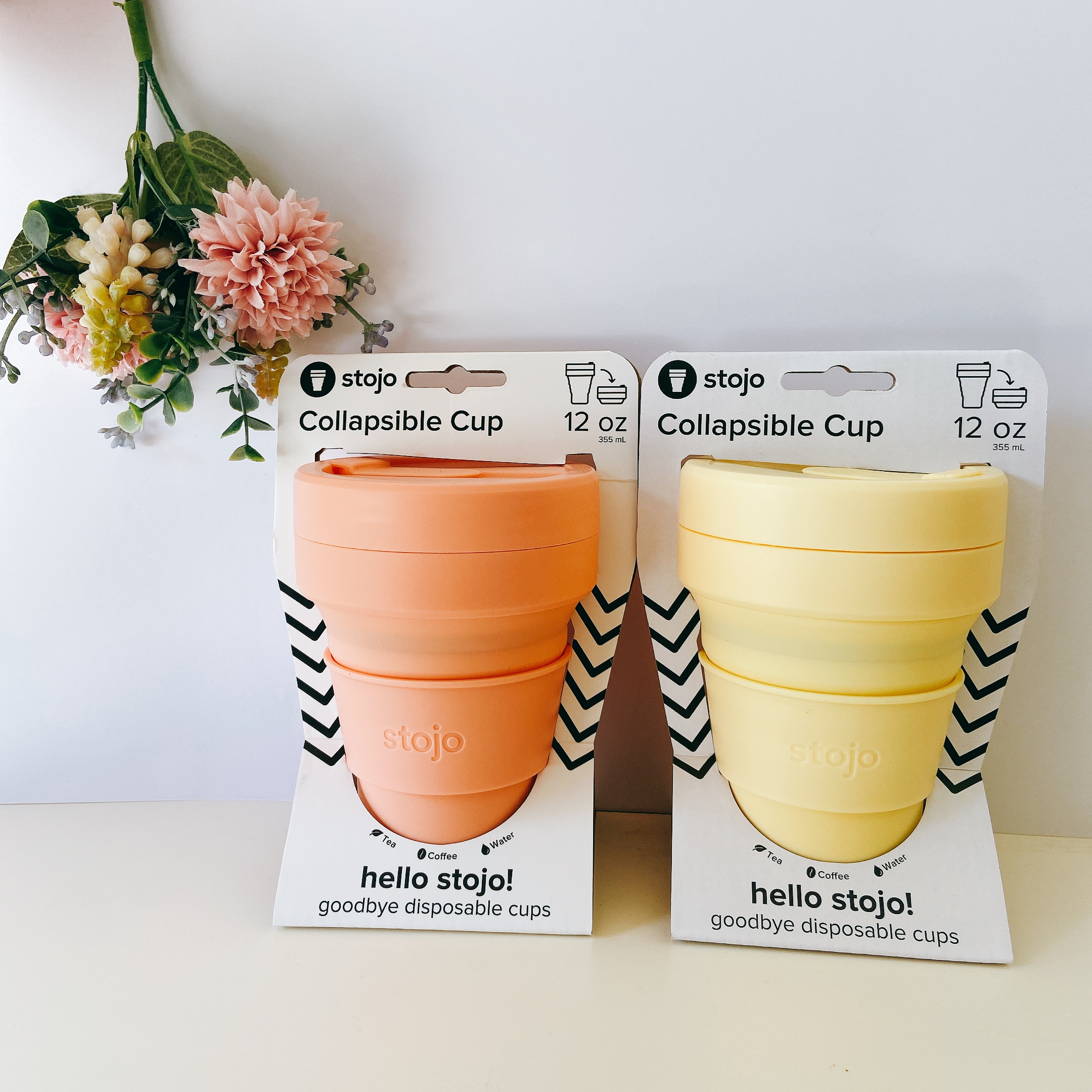 コンパクトに折りたためて、何度でも使えるマイカップ。 使用後は折りたためて気軽に持ち運べるのも便利。 ペットボトル消費を抑え、エシカルでサステナブルな生活を。 (stojo/POCKT CUP 355ml・BIGGIE 470ml)