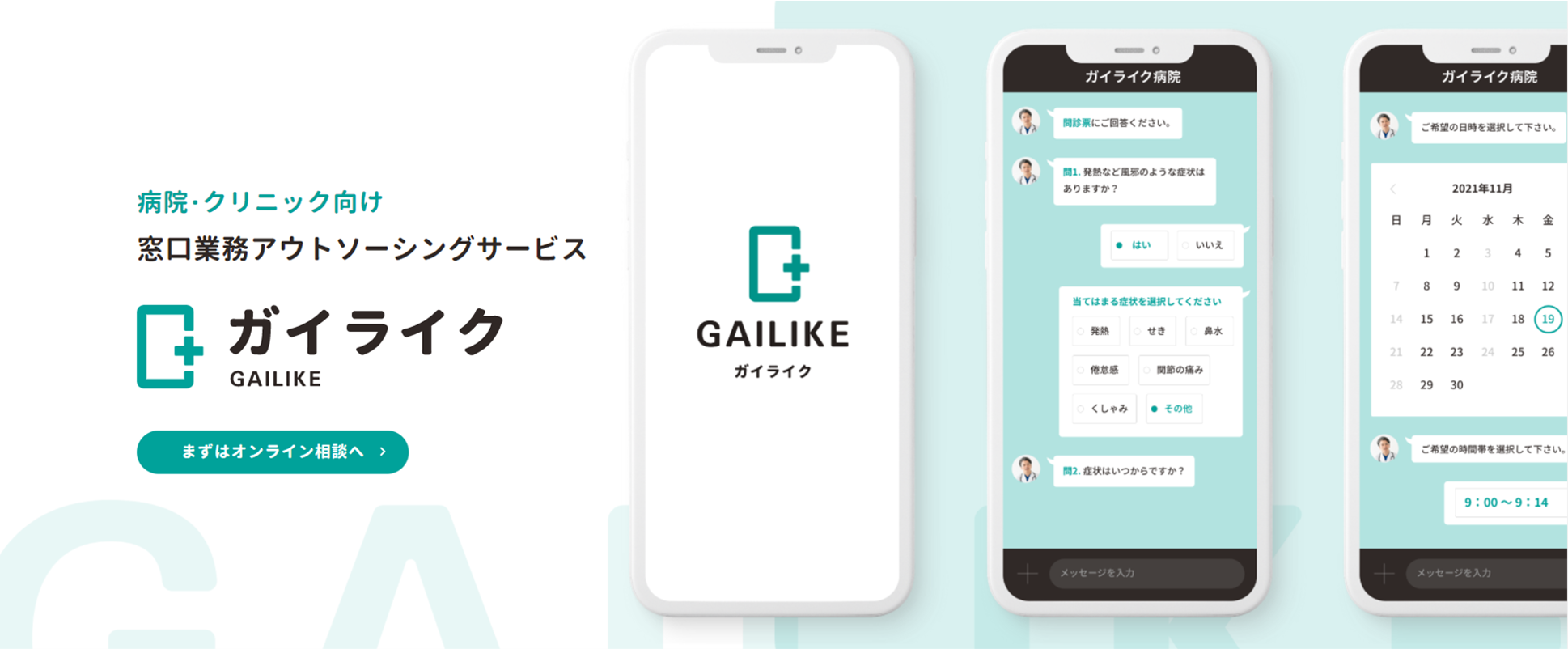 窓口業務アウトソーシングSaaS「ガイライク」を全国のクリニックに提供することで、ITリテラシーの有無を問わず通院全患者の受診⼿続きをデジタル化し、『全ての患者の受診体験を⾰新する』という⽬標を達成してまいります。また今後、オンライン診療にも参⼊し対⾯・オンライン問わず医療機関と患者を繋ぐインターフェイスの役割を担い企業の成⻑を⽬指します。