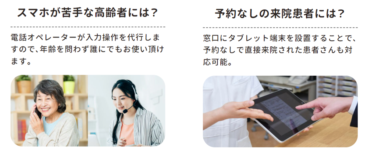 これにより、病院での待ち時間や対⼈での窓⼝業務を削減することができます。