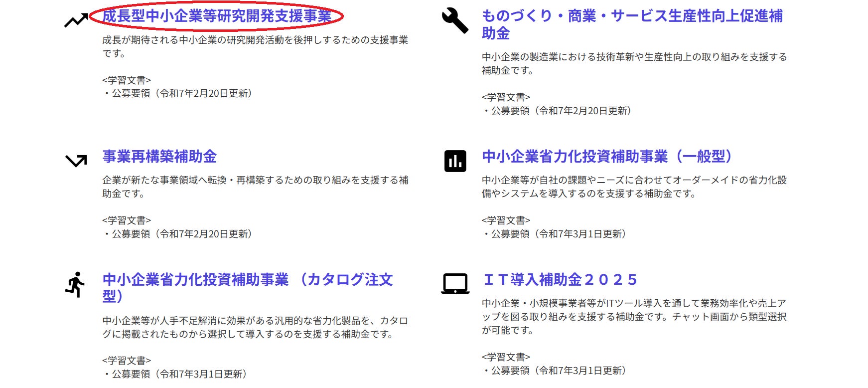 将来的には対応できる補助金や助成金の拡充、補助金文書作成の支援機能も含めていきたいと思っています。ご要望があればお寄せ頂けると幸いです。