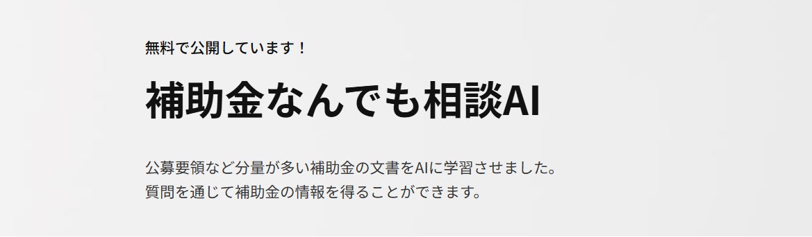 補助金ラッシュの季節到来!分厚い公募要領を読まなくてもAIが教えてくれる「補助金なんでも相談AI」を本日リリース。