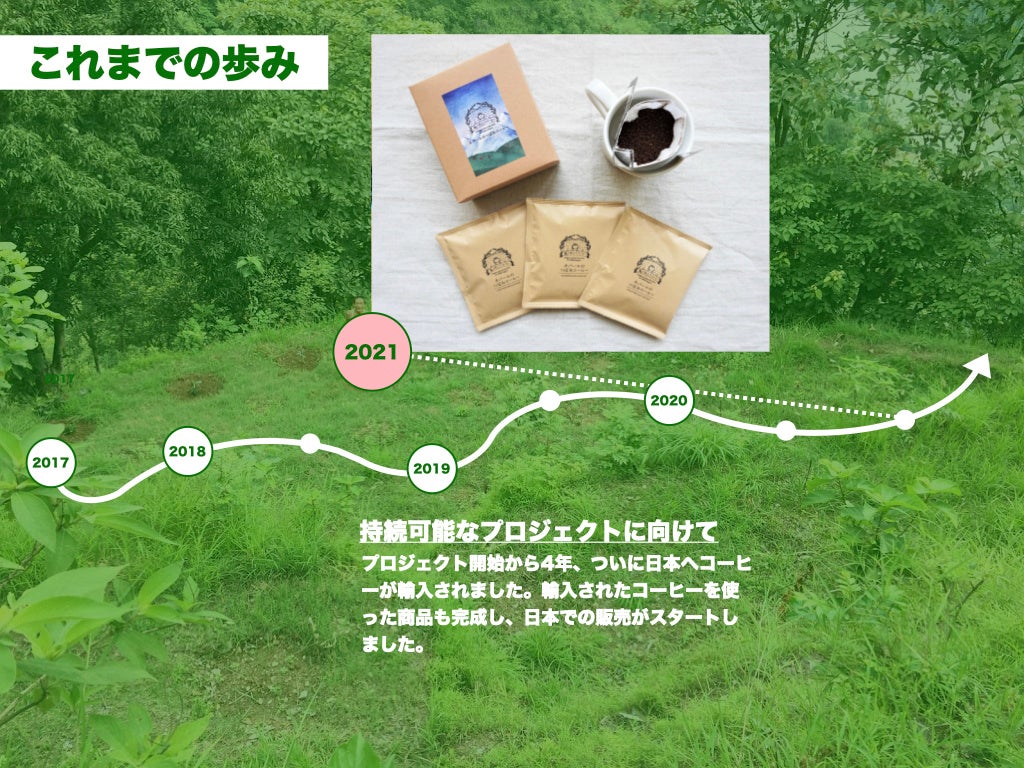 2021年1月には、210kgのコーヒーを初めて日本へ輸出。同年12月にはColorbathオリジナルの商品をオンラインにて販売開始し、4年の月日をかけて育まれたコーヒーを、みなさんのもとにお届けできるようになりました。