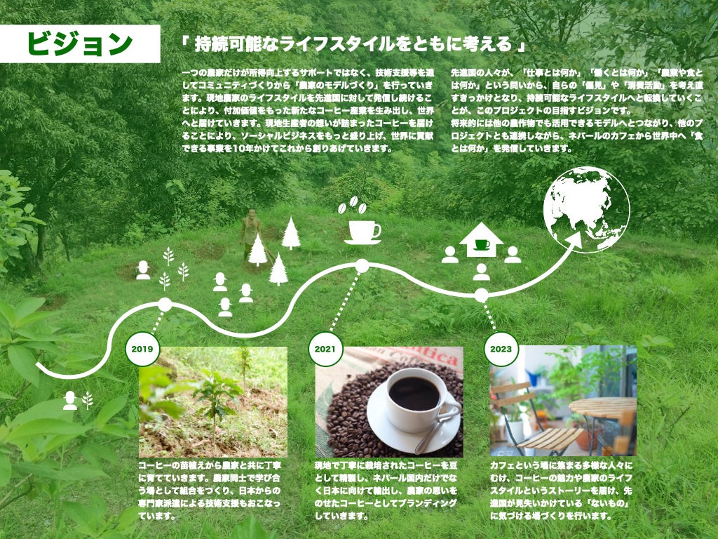 そんな中、2017年に「村にいながら収入を得る方法を増やして、未来の子どもたちに教育の機会を与えたい」というネパールの青年の想いに出会い、コーヒーづくりを始めました。