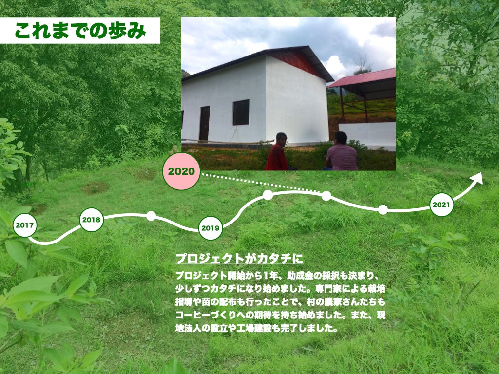 2020年には、「草の根・人間の安全保障無償協力」の助成を受けて、コーヒーの最終加工工場が完成しました。