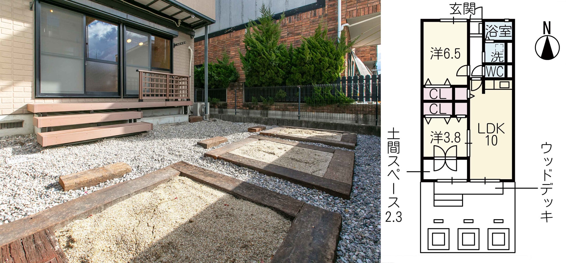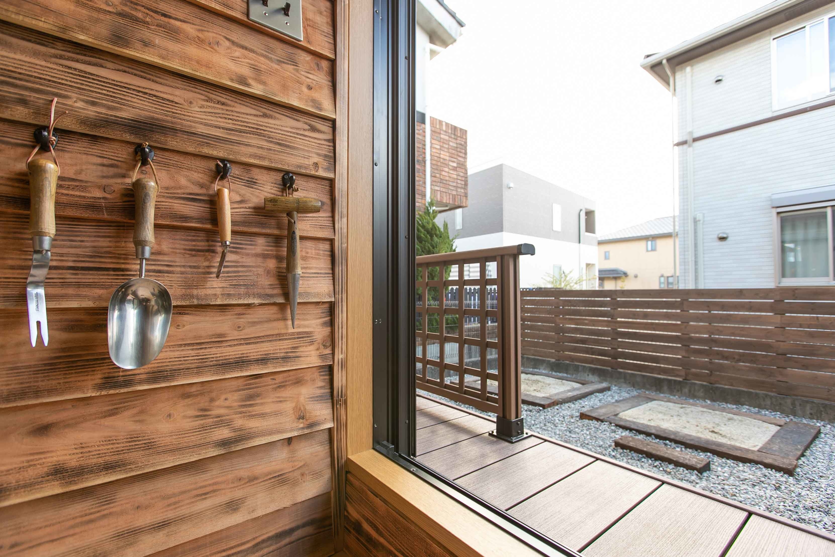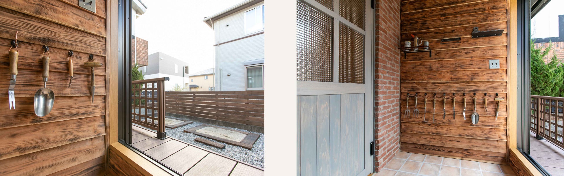 1階の専用庭に菜園用区画を設け水栓やLEDライトを完備しました。室内には土間を設けることで作業スペースを確保し、賃貸物件でも「本格的な家庭菜園がしたい!」という声に応えました。