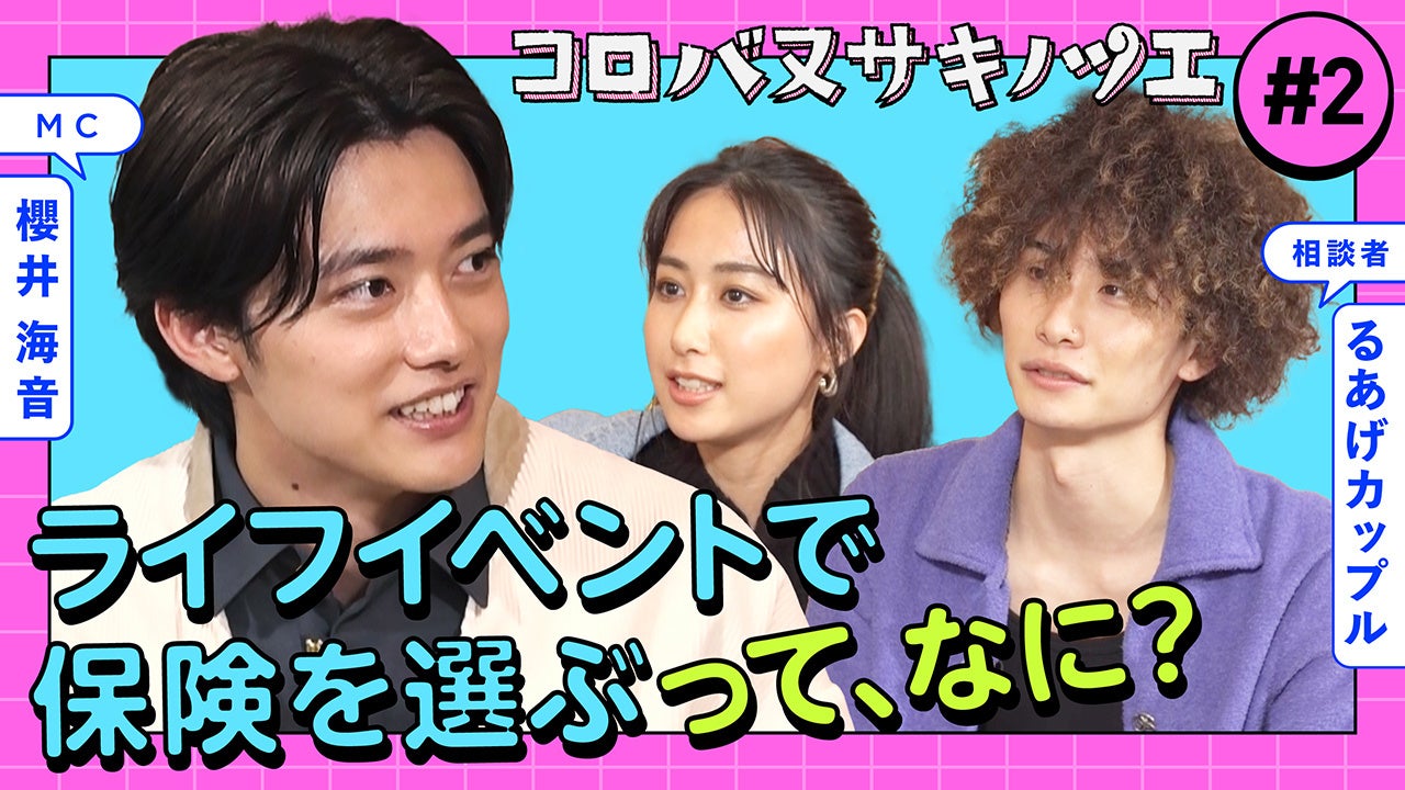 本番組は、MC初挑戦となる俳優の櫻井海音さんをMCに迎え、生命保険に関するゲストのお悩みをトーク形式で答えていく構成です。ゲストには、「生命保険って何のために入るの?」「色々あるけどどれが必要なの?」などの悩みがあるZ世代を代表する人気カップルYouTuber「るあげちゃんねる」のお2人(chapter1,2に出演)や、バスケ女子インフルエンサーの「すみぽん」さん(chapter3,4に出演)をお招きし、かんぽ生命の社員が❝生命保険のそもそも❞をレクチャーします。