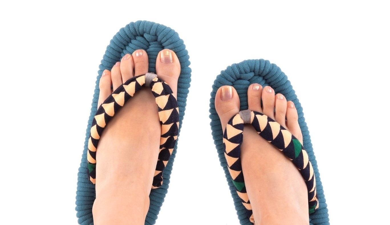 一般的な布ぞうりは着なくなったTシャツなどを裂いた布を使って作られていますが、MERIはニット素材を使用しており肉厚なソールが特徴的。洗濯機でお洗濯をすることが可能です。また、耐久性にも優れており1足あたり約2年ほどお使いいただけます。