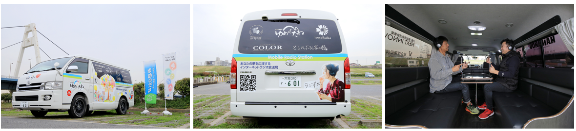 ラジオ収録がなかなかできない、地域や人々の元にもゆめのたね号は登場し、ラジオを楽しんで頂きます。