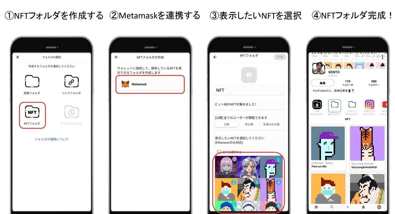 NFTギャラリーとして作成されたフォルダはPortFolder内で他のユーザーにレコメンドされたり、ユーザーの相性に合わせたNFTのレコメンドに使用されます(いずれも今後実装予定)