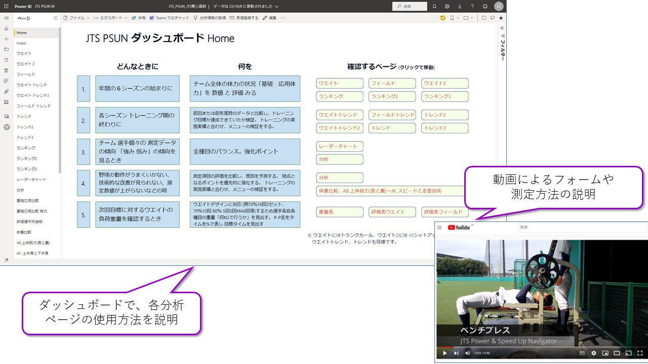 株式会社 JTS は、聖光学院野球部、上武大学野球部をはじめとする、高校・大学・社会人野球チーム向けの運動指導を実践しています。JTS Power & Speed Up Navigator for Baseball(以下 PSUN)は、その体力トレーニング指導で使用している、データ管理、分析、目標設定を支援するシステムを提供します。