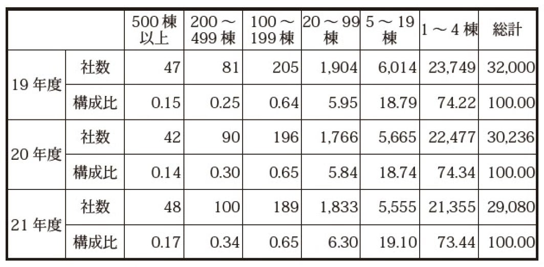 ・年間1~4棟着工 21,355社(同▲ 1,122社)