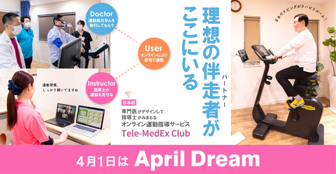 【オンライン運動指導Tele-MedEx Club】は心臓リハビリテーションの手法を取り入れ、医師・専門スタッフ(心臓リハビリテーション指導士・健康運動指導士)のもと、オンラインで運動を仲間と楽しく行えるサービスです。
