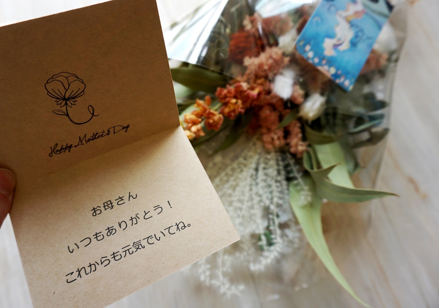 多くの時間を過ごすキッチンに、感謝の気持ちがこもったドライフラワーボトルを飾っていただければ、忙しい時間でも母の日の思い出がそばに感じられてきっと喜んでいただけるはずです。