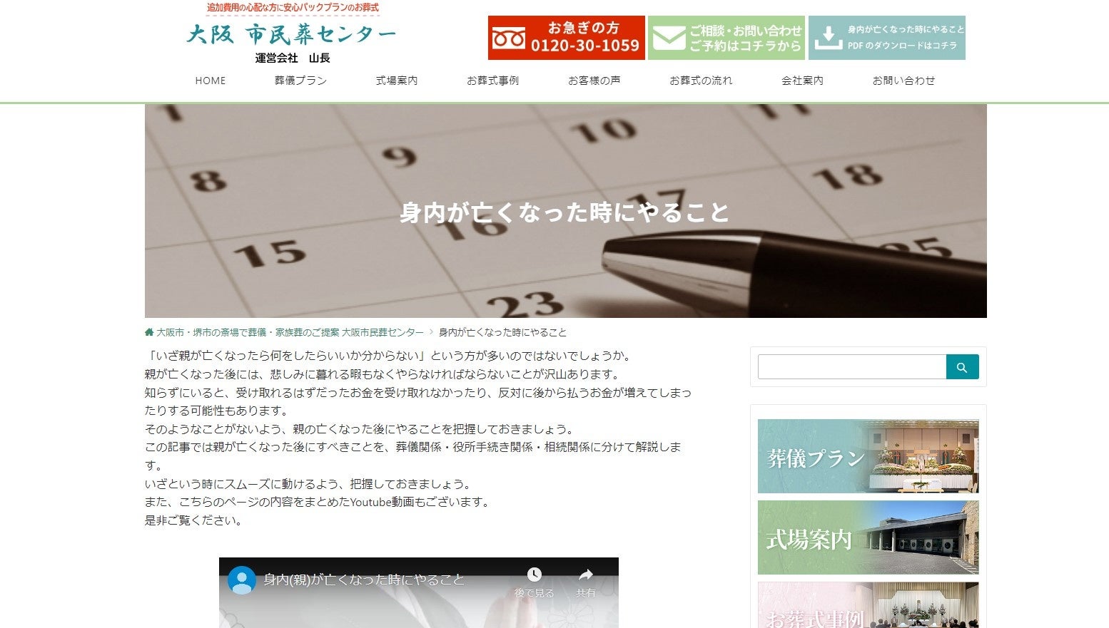 2005年創業以来、大阪市・堺市で5,000件の葬儀を施行してきた山長(大阪市東住吉区、代表:宇山 真一)が運営している大阪市民葬センターは、WEBサイト内に「身内が亡くなった時にやること」特設ページを公開しました。