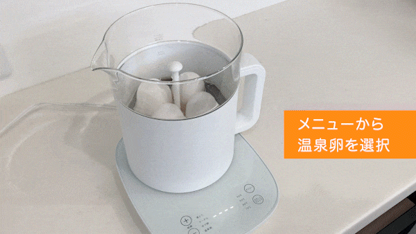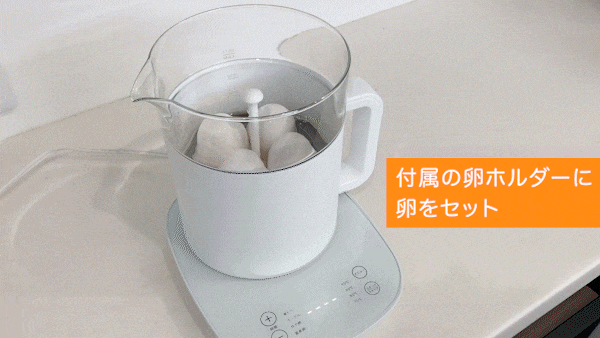 付属の卵ホルダーを使って、「固ゆで」、「普通」、「半熟」など、あなた好みの「ゆで卵」を作ることができます。いつもスーパーなどで買っている温泉卵もクックケトルにおまかせで調理が可能です。