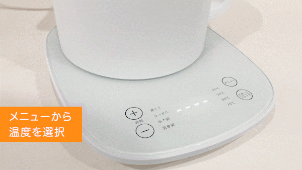 お湯を沸とうさせるだけのケトルでは「好みの温度に出来ない」という問題がありましたが、クックケトルはそんなお悩みを解決するため、100℃(沸とう)、95℃ 、90℃、80℃、70℃ 、の温度を設定できるよう開発しています。ぜひ、こだわりの温度でコーヒーや紅茶などをお楽しみください。温度を低く設定して渋みの少ない緑茶を楽しむこともできます。