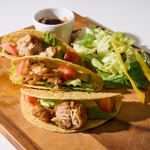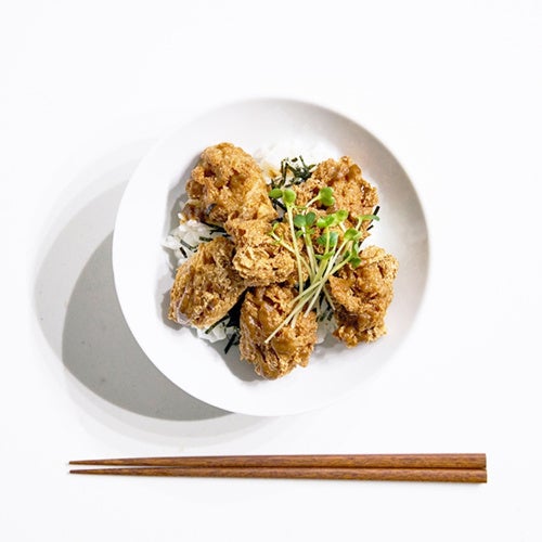 (画像4:唐揚げ調理例。唐揚げ丼 、唐揚げタコスに中濃ソースアレンジサルサ)