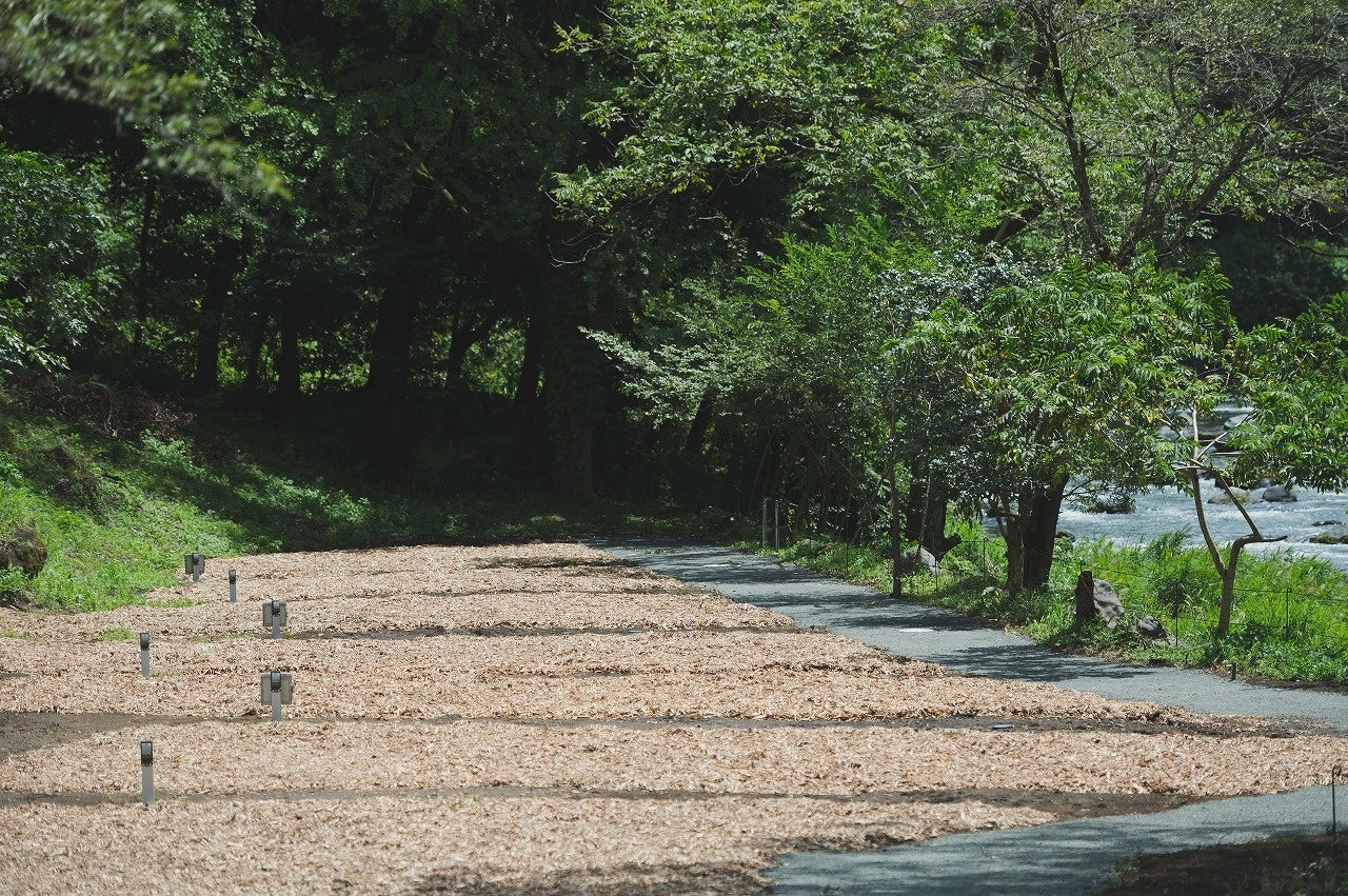 区画サイズは約7m × 7m、全8サイトありウッドチップを敷いております。