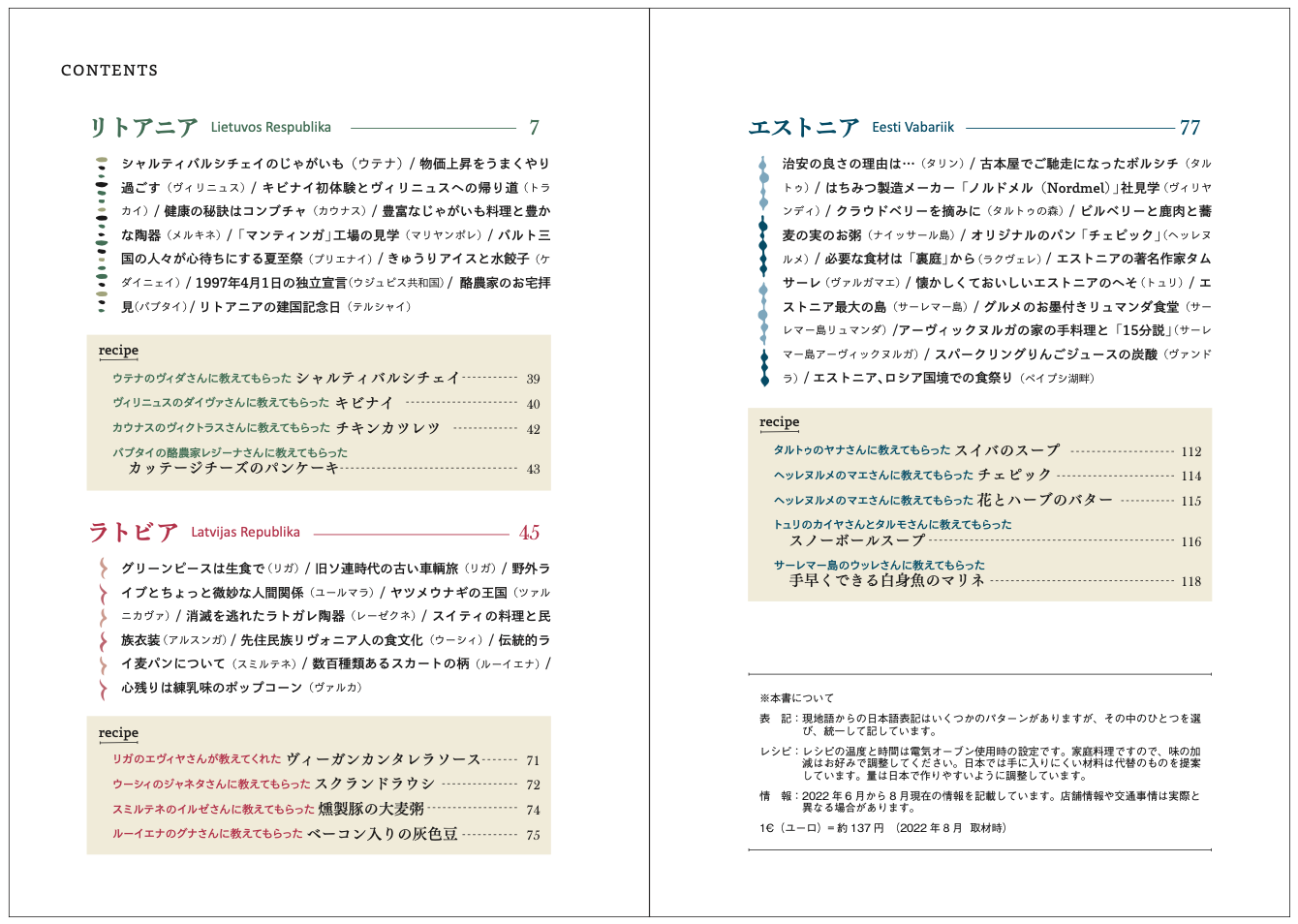 バルト三国(リトアニア、ラトビア、エストニア)の家庭のキッチンへ訪問し、その家庭で作られるレシピを教えてもらう旅を続けた旅の本です。キッチンで作られるその土地の文化、歴史、人々の素顔に迫ります。