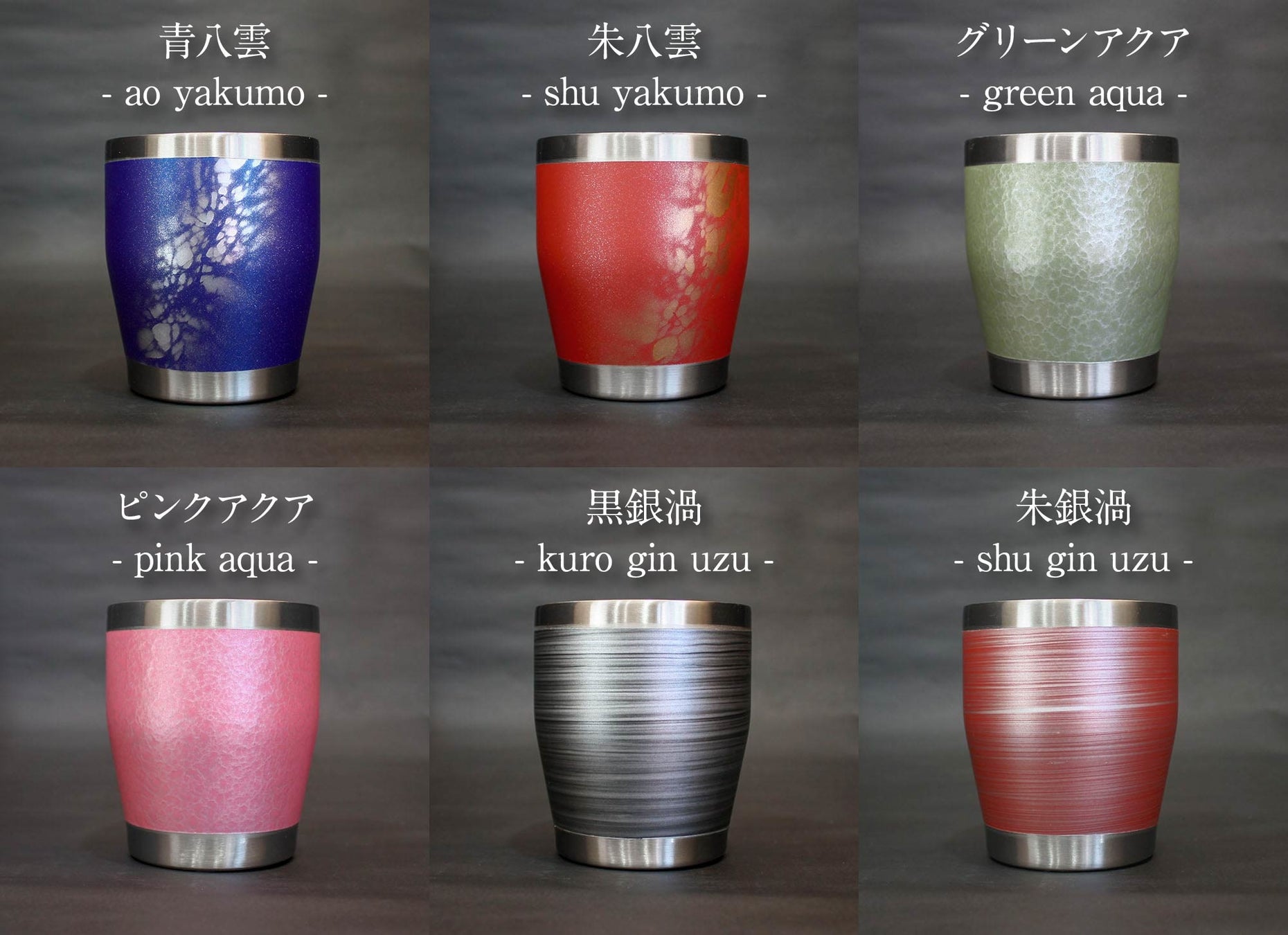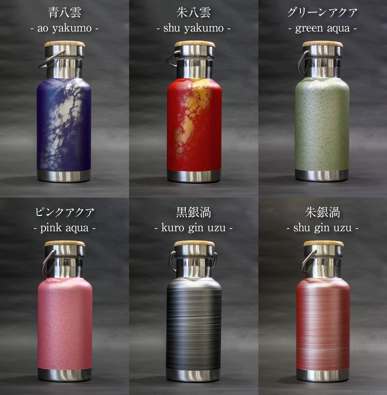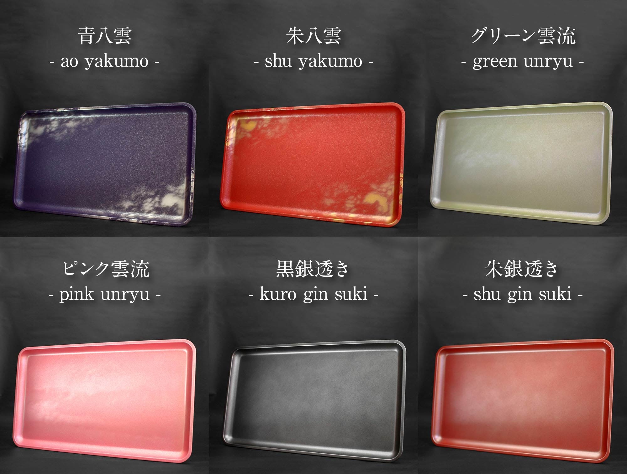 ・青八雲 ・朱八雲 ・グリーン雲流 ・ピンク雲流 ・黒銀透き ・朱銀透き