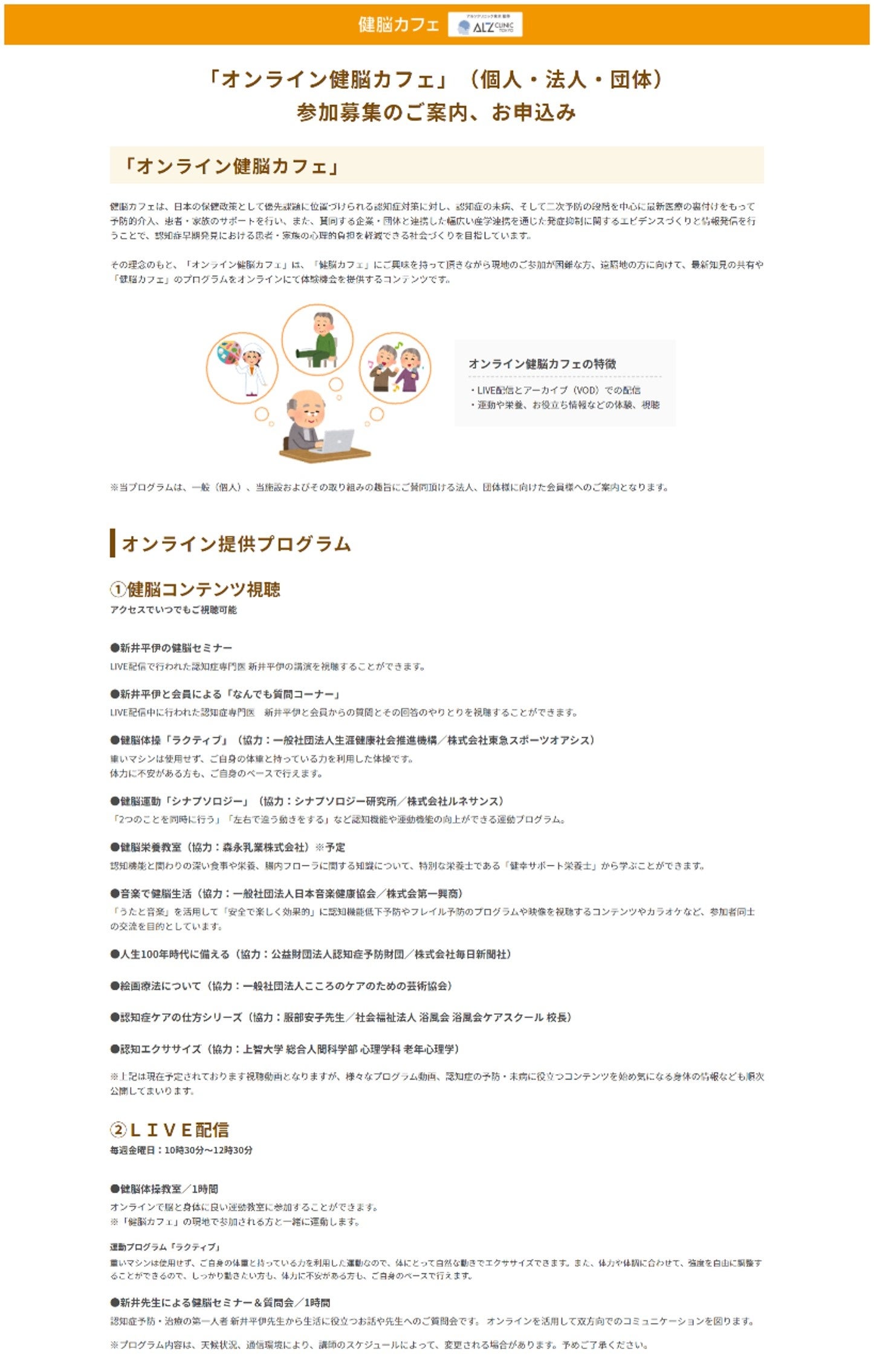 アルツクリニック東京監修「オンライン健脳カフェ」を開設https://alz.tokyo/kennocafe-online/~個人会員、法人・団体の賛助会員の募集を開始~