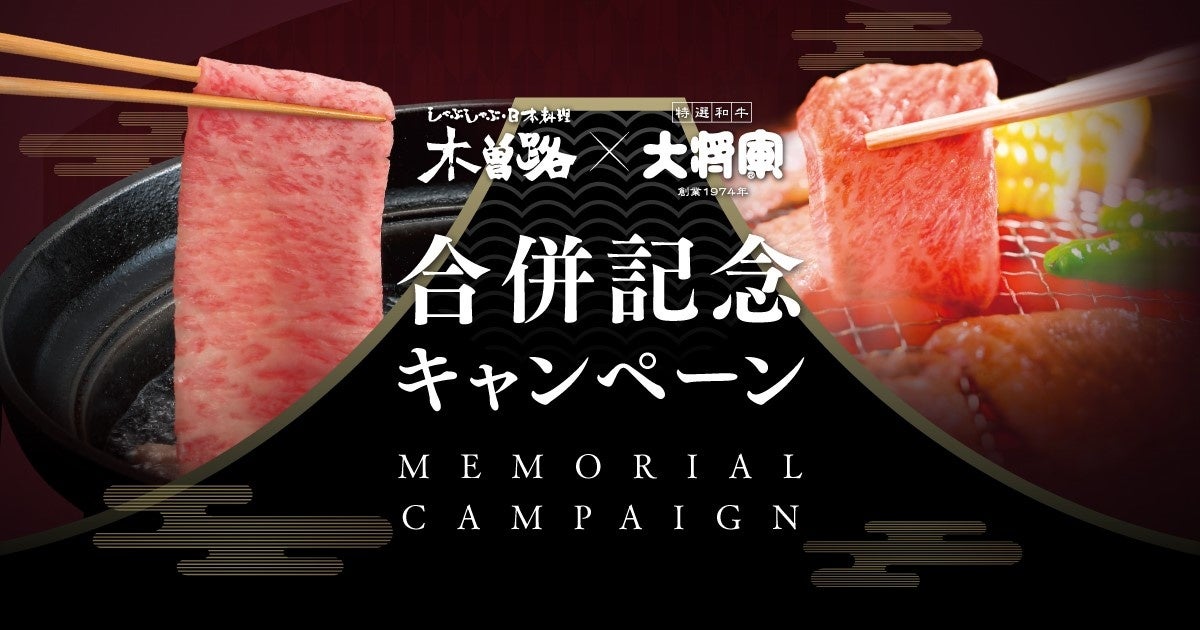 本合併を記念して、「しゃぶしゃぶ・日本料理の木曽路」および大将軍グループの「特選 和牛 大将軍」「国産牛焼肉 くいどん」の3ブランドにて、合併記念キャンペーンを7月 4日(火)より各店舗にて展開いたします。