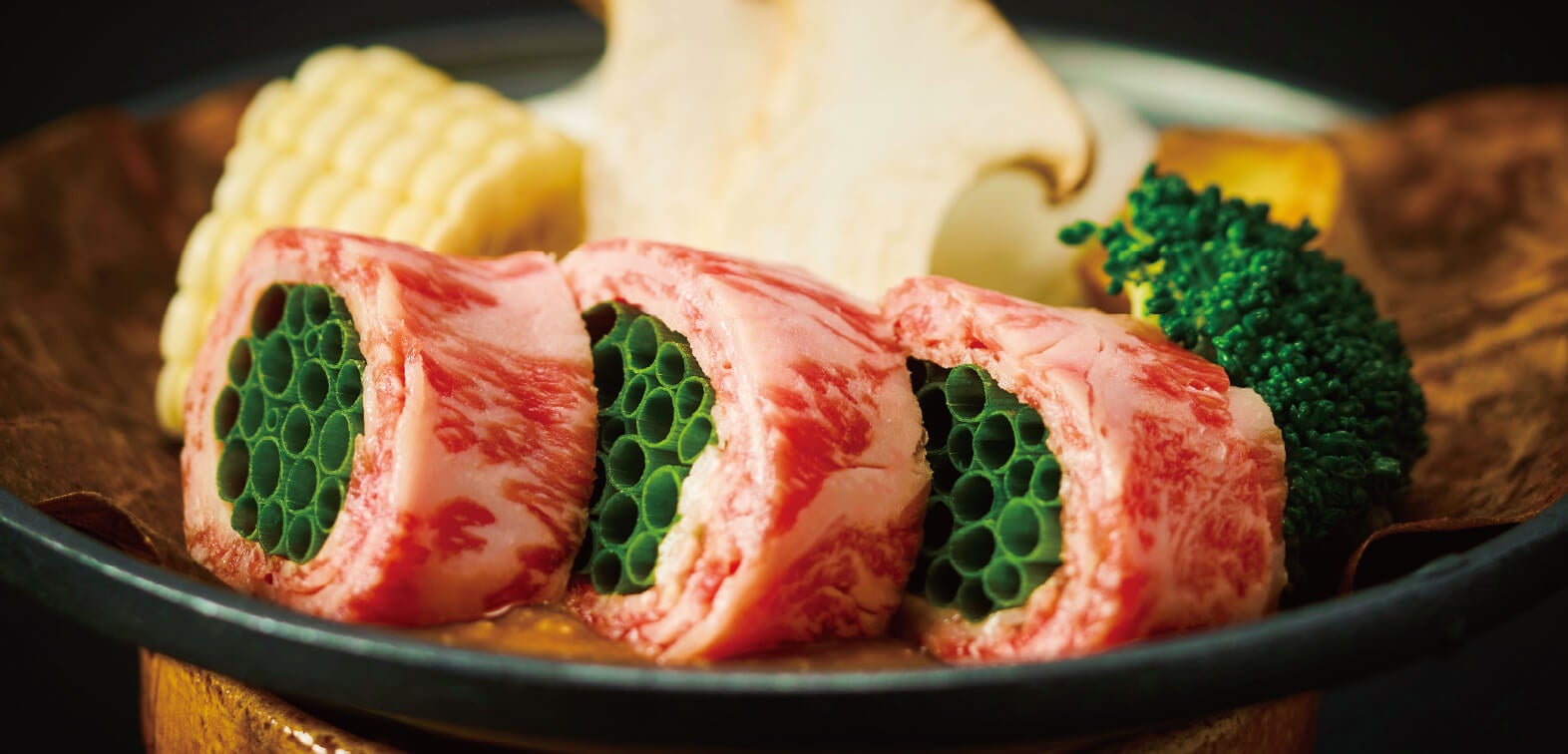 和牛と季節野菜の朴葉焼き
