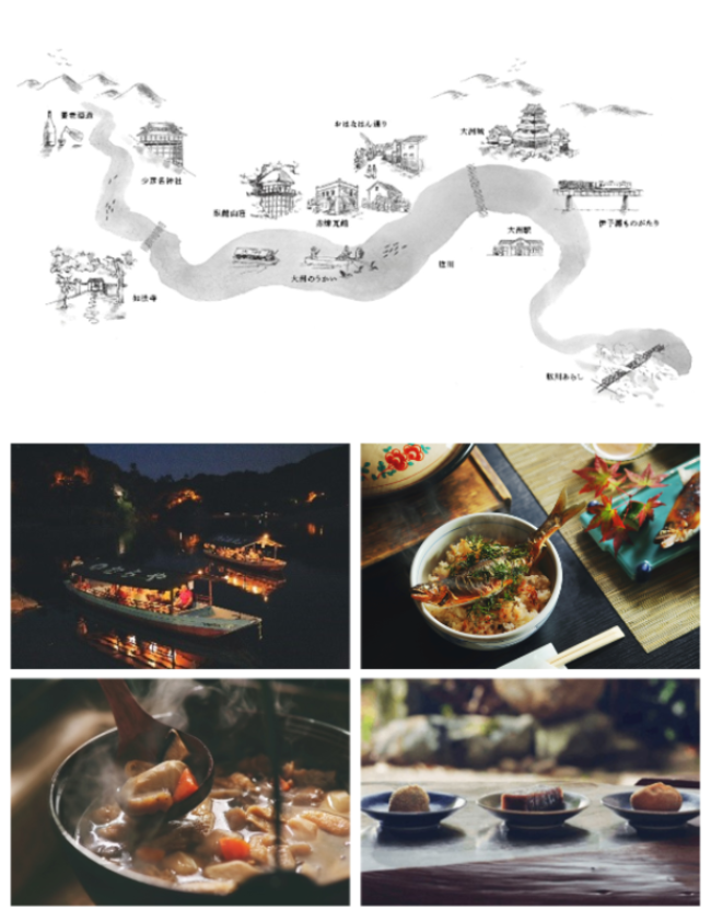 山から海へ、悠々と流れる肱川によりもたらされた、海・山・川の幸。流れに寄り添い生きる先人の知恵がもたらした、風土の食をいただく。