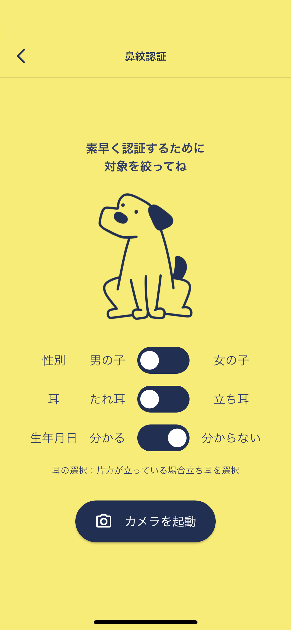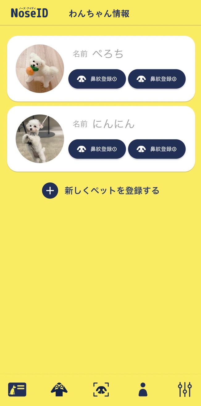予防接種状況や健康状態、既往歴のアプリ一元化、動物病院やサロンでの活用をはじめ鼻をスキャンするだけでわんちゃん情報が確認できるように。