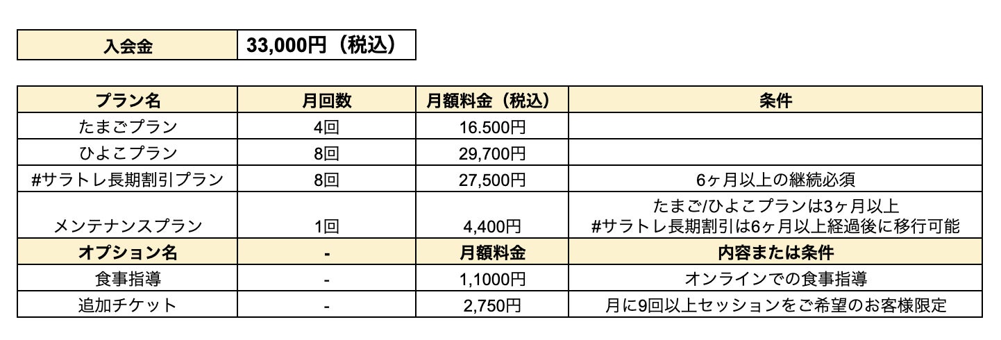 オープニングキャンペーン実施中!先着20名様限定で入会金無料&月8回の#サラトレプランもお得に