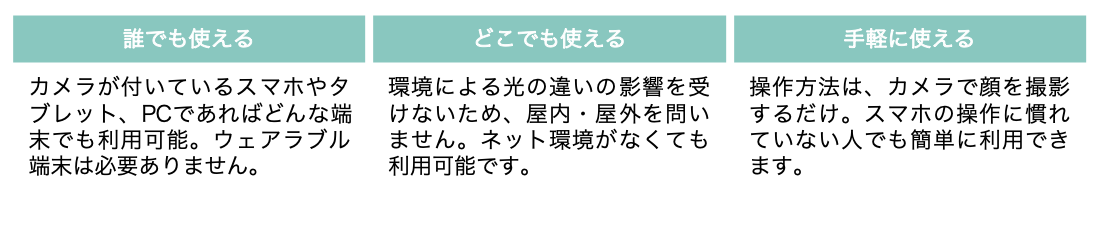 事業内容 :非接触生体情報取得技術を活用した サービスの開発、販売、サポート等