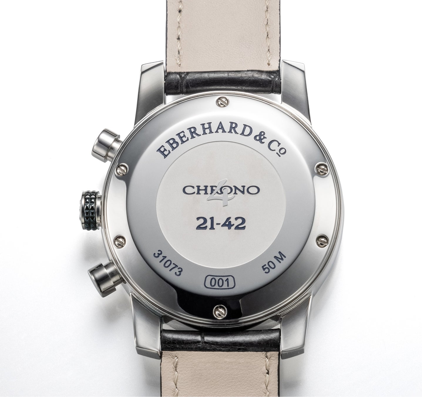 ステンレス・スティールケースはポリッシュとサテン仕上げ、ねじ込み式ケースバックはラショー・ド・フォンのスペシャリストセンターの品質基準に合格した証としてピリオドロゴと銘刻文字で刻印されており、またはISO 7642020規格への準拠を証明しています。
