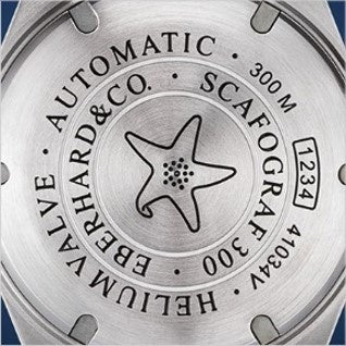 ケースバック:ステンレス・スティール、ネジ留め式による固定、スターフィッシュ模様の刻印