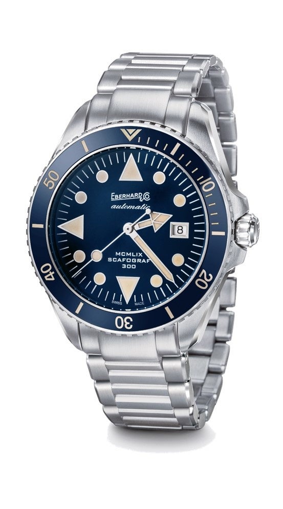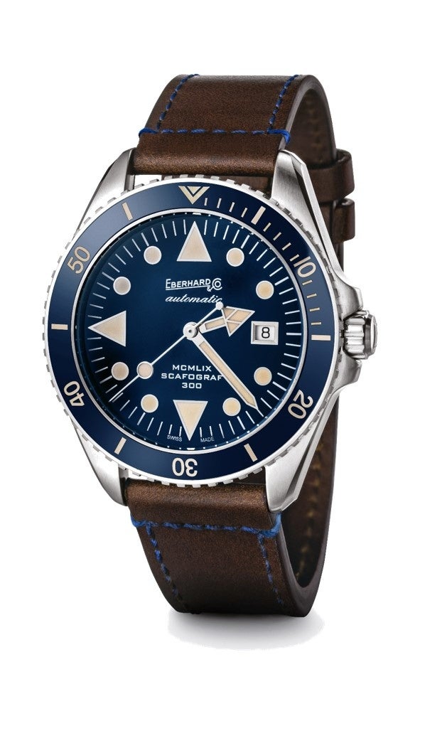 スカフォグラフ 300 MCMLIXに、ブルーのダイアルとセラミックベゼルの新バージョンが登場しました。このモデルは、レザーストラップとスチールブレスレットの2種類があります。