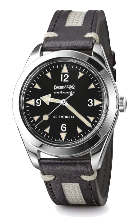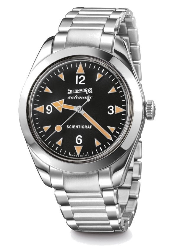 復刻版「サイエンティグラフ」は直径41mm、100 メートルの防水性を備え、シンプルな3針がデザインである自動巻きの機械式ムーブメントを搭載しています。