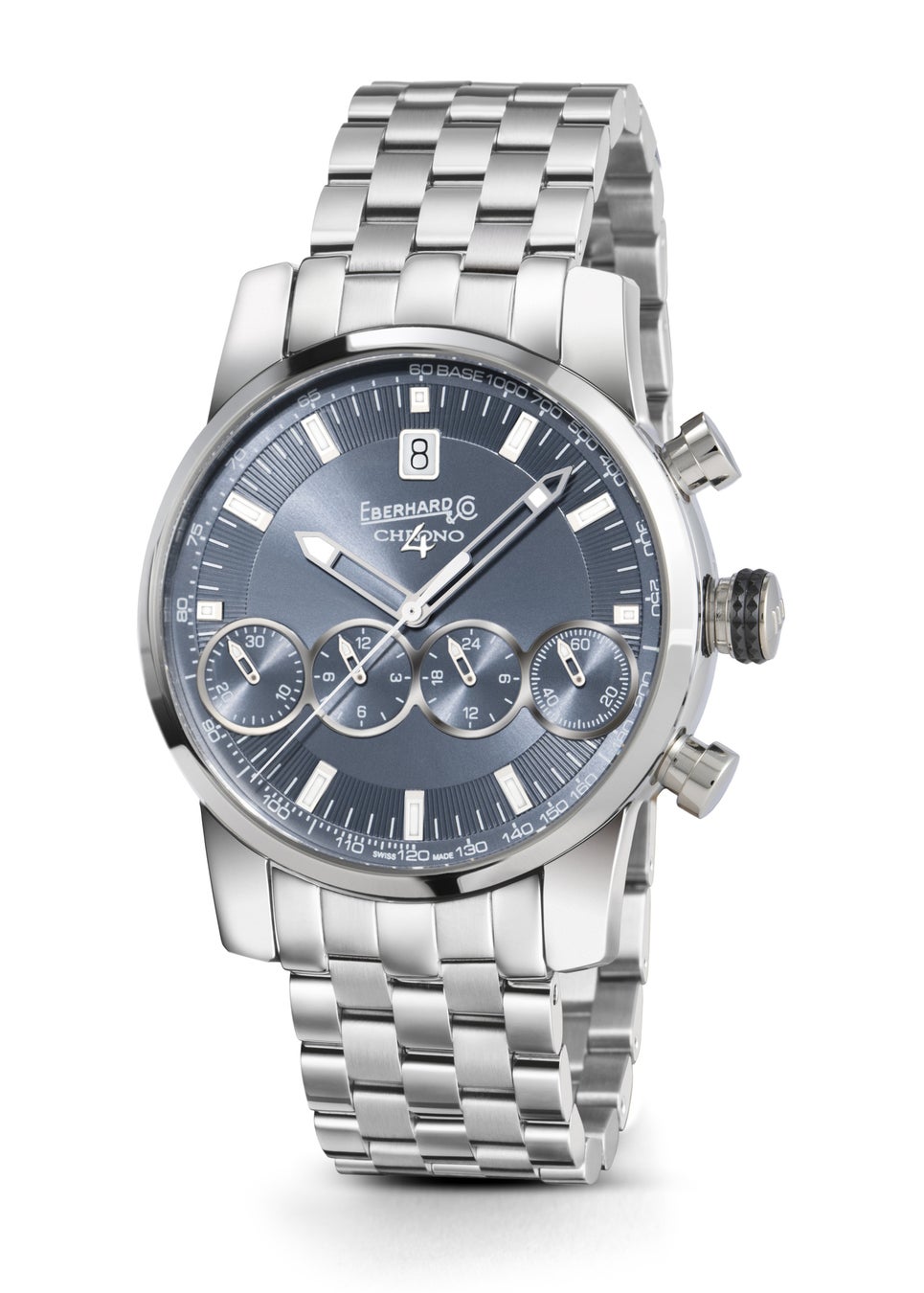 モンティは、それまで12時、3時、9時の位置に2つ(あるいは3つ)装備されていたクロノグラフのカウンターを「より論理的かつ直感的に」読み取れる技術を開発できないかと考えました。数え切れないほどの試行錯誤を経て、2001年、ムーブメントに4つのカウンターを並列させた装置の特許を取得。時計製造の歴史上初、クロノグラフカウンターを横一列に配置した時計『クロノ4』を生み出しました。革命的な『クロノ4』の評判はまたたく間に世に広まり、エベラールは革新的な高級時計メゾンとしての確固とした地位を築くことに成功しました。