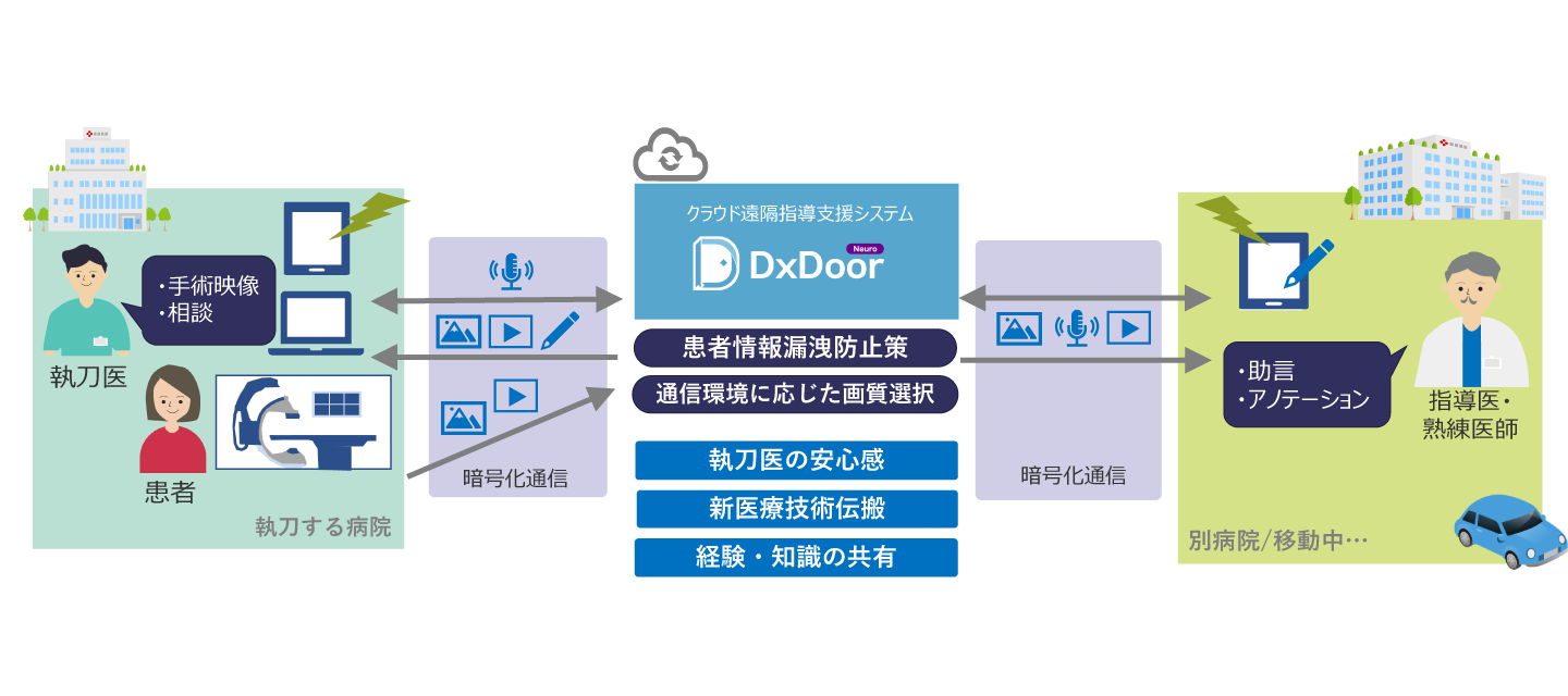 血管造影画像をリアルタイムで指導医に伝送 。脳血管内治療の指導に特化した遠隔指導支援サービス「DxDoor Neuro」(ディーエックスドア ニューロ)を全国医院、医療機器メーカー様向けに発売を開始します。