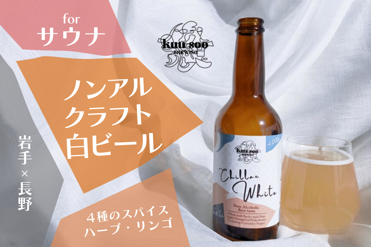<第2弾商品概要>●名称:Chillax White ●品名:炭酸飲料 ●内容量:330ml ●原材料:麦芽(イギリス製造、ドイツ製造)、りんご果汁(長野県産)、果実果皮加工品、ホップ、コリアンダー、エルダーフラワー、カルダモン、こしょう/酸味料(乳酸)、炭酸、(一部に小麦・りんご・オレンジを含む) ●使用ホップ:ナゲット、カスケード ●アルコール分0.00% ●販売者/kuusooBREWING 岩手県釜石市大平町3-9-1 ●製造所/南信州ビール株式会社駒ケ岳醸造所4752-31●予約販売について:2022年1月15日~2022年2月4日の期間中、クラウドファンディングサイトcampfire(Good Morning)で販売。URL: https://camp-fire.jp/projects/view/540693 ※14日時点では、上記URLは公開されていません。15日に上記URLにて公開となります。