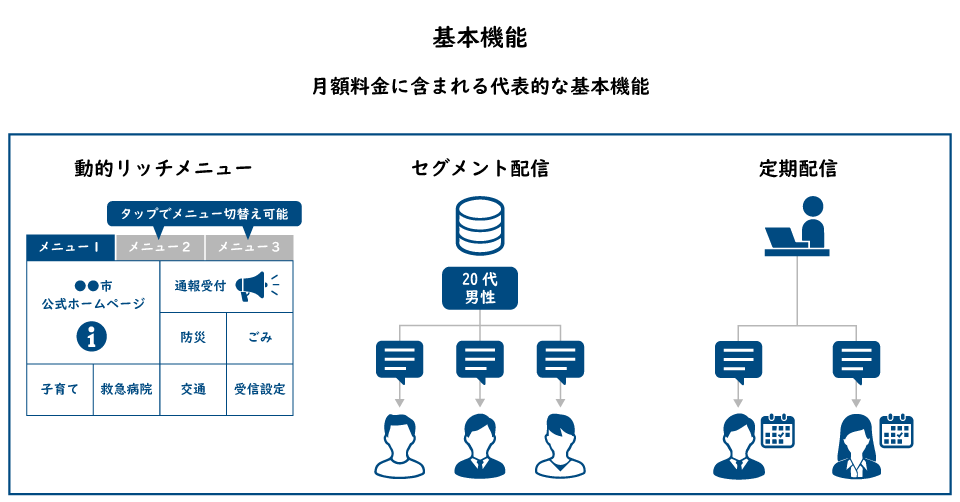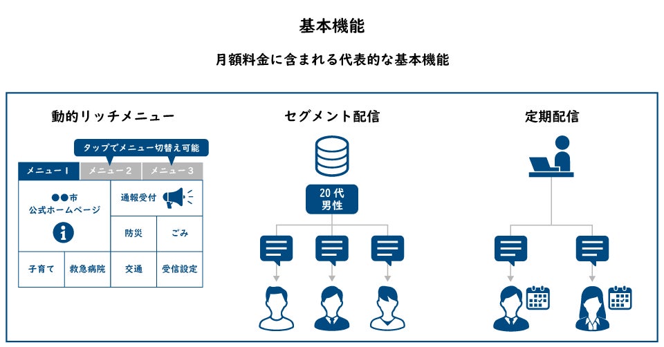 マイナンバーカードの交付予約や窓口受付、イベント出席など、住民は自治体のLINE公式アカウントのリッチメニューが玄関口となり、希望する事業の予約受付にスムーズに進めるので、利便性が高まります。