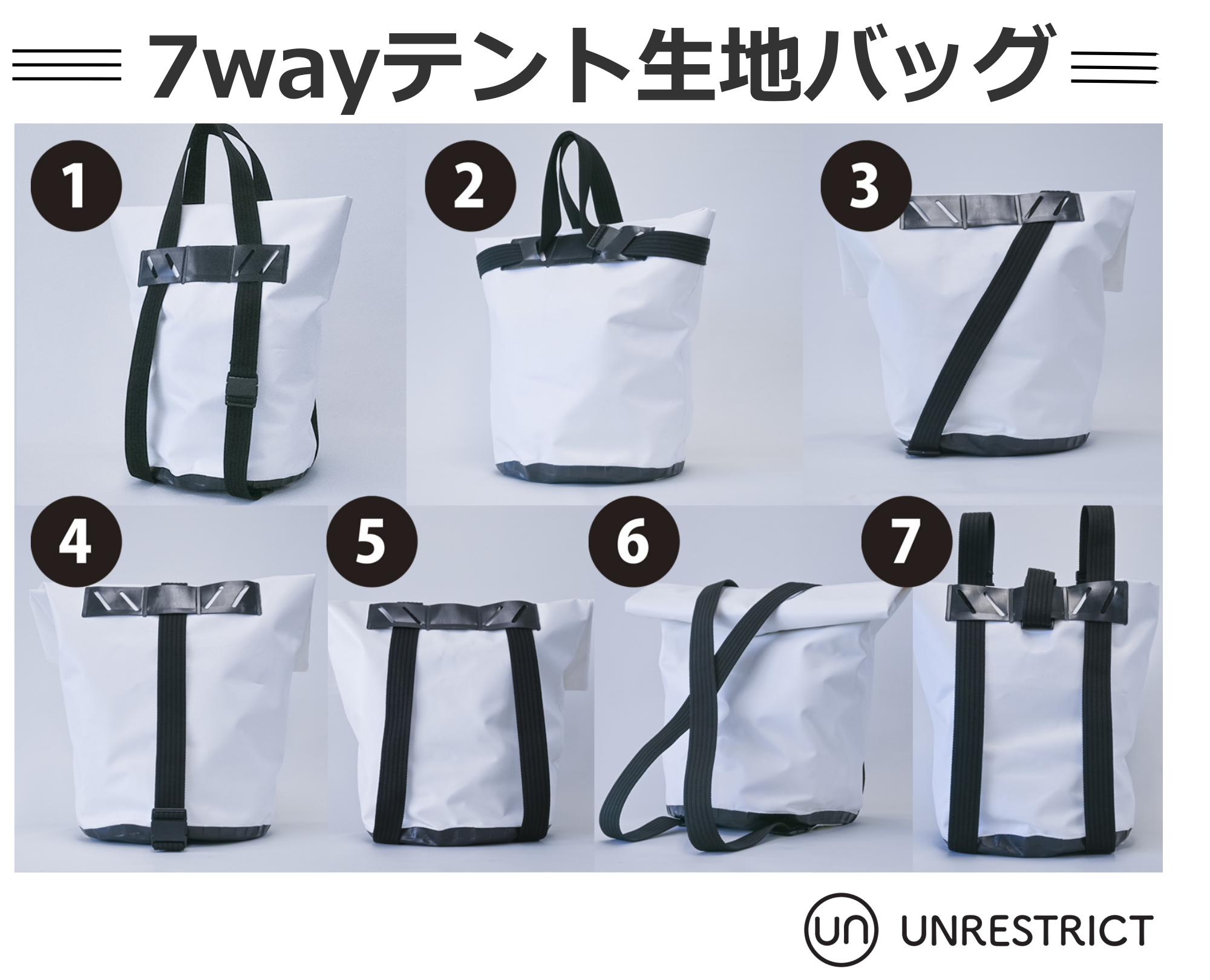 7通りに使えるSDGsなバッグ新発売! 防水・防炎&耐久性抜群で、ビジネスやアウトドアから防災時にも活躍する『7wayテント生地バッグ』