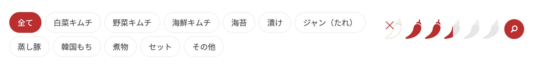 辛いキムチが好きな人も苦手な人も購入しやすいように、辛さレベルで商品を検索できるようになっています。