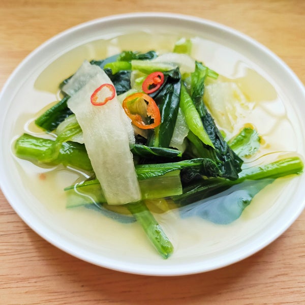 白菜、小松菜、大根の歯ごたえと青唐辛子のおいしさと一緒にお楽しみください。